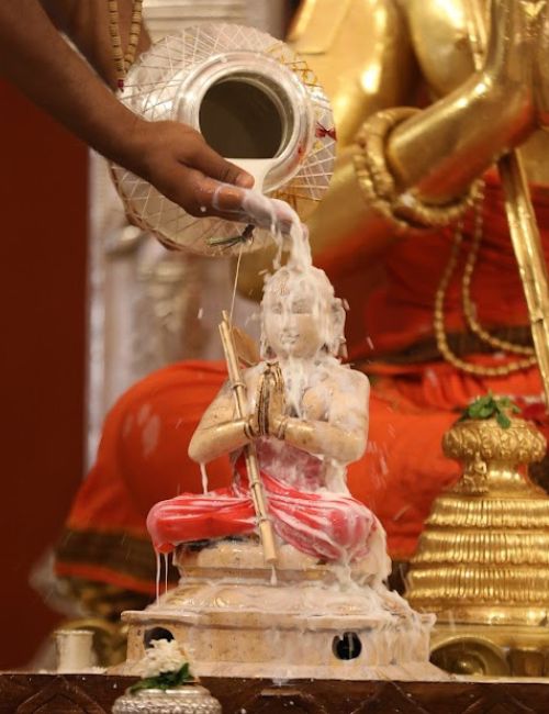 Have you ever wondered about the purpose of the sacred bath, abhishekam, to God? The ingredients used in this bath are generally five-fold: milk, curd, ghee, honey, and fresh fruits. It is not the typical soap and shampoo that we apply to the deity because the primary purpose of abhishekam is not to cleanse the deity.